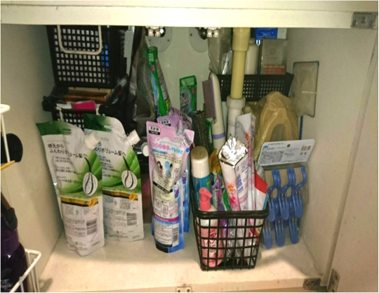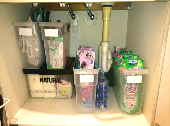 既存の収納ボックスも再利用して、使用頻度の少ないモノ入れにしました。